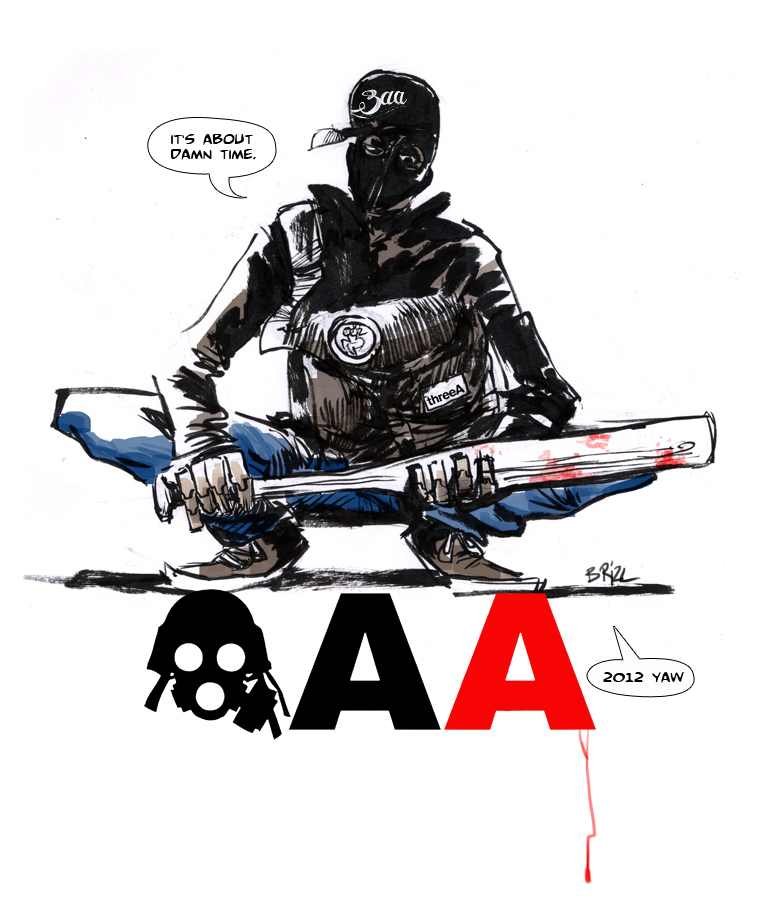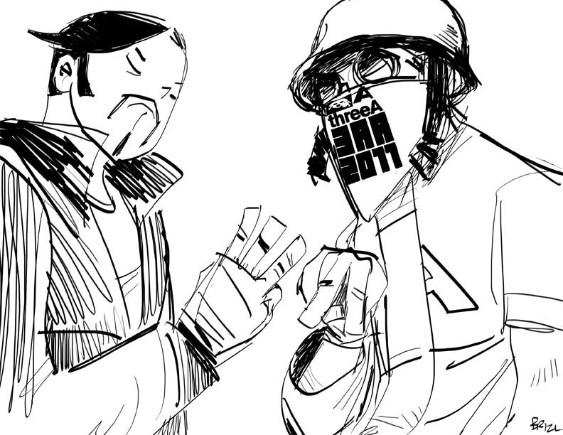 BRiZL是一位平面设计师,真名Leonard Brizuela,住在美国的萨克拉门托。平时除了设计设计海报、衣服,画画插画、漫画,此人还是3A的超级粉丝!闲暇之余,就会在自己的博客上发布一些3A的涂鸦作品。