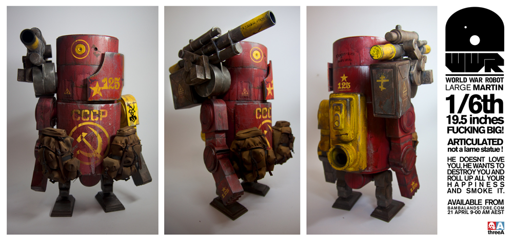 首先做个更正:以前我一直说大马丁是Harold(哈罗德)的后继机型,这是错误的,大马丁是Bob的继任者。Bob机器人尚未推出过玩偶,连Ashley Wood的油画上都没有见过。