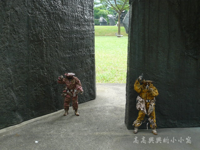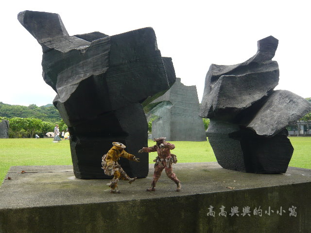 在美好的景色里往往能拍出意想不到的好境界。台湾的一位玩家带着他的两只Finger Gang来到了台北县的朱铭美术馆,学着美术馆里的雕塑给玩偶摆起了造型,于是就有了下面这组生动有趣的外拍。