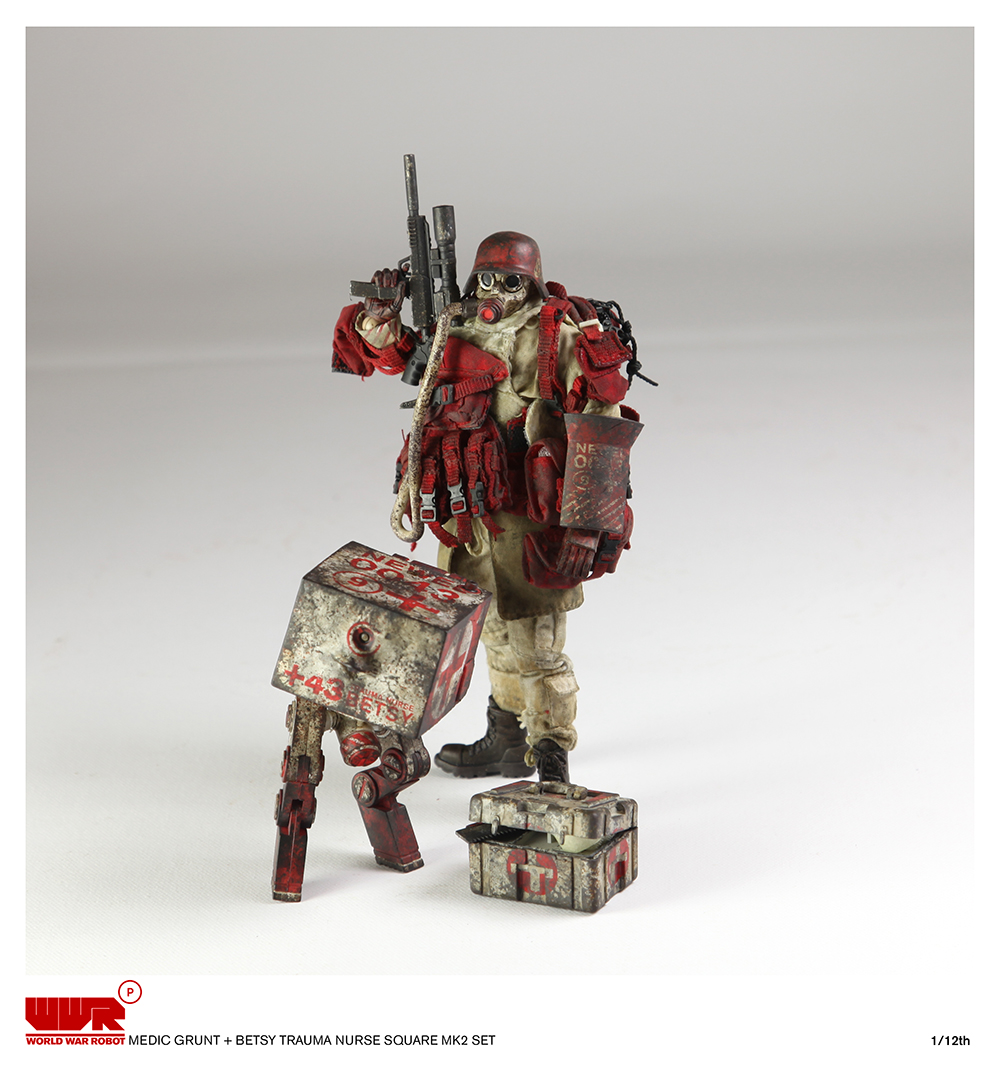 上午10点多,发售即将要结束时,3A突然无预警发售了WWRp系列的Medic Grunt + Square MK2套装,套装包含1:12的医疗士兵、长腿小方块和医疗箱各一只。售价为59美元,每只需另加15美元邮费。