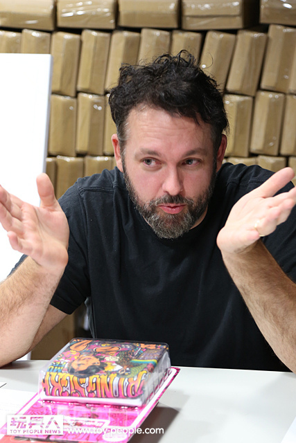 你们知道吗?当任何的一个合作关系像我们这样,就会回到最基本的冲突问题,就像Kim想创作芭乐歌,但我却想制作流行乐一样。但我们之间的合作却是天衣无缝,我认为Kim目前所做的努力无疑的是要把threeA推向另一个高峰,一个其他玩具公司从来没有达到的另一个新顶点,而要制作出独一无二的作品也是我们所致力的目标之一。