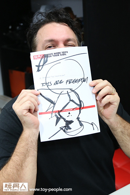 我们希望能让许多人因为爱这种玩具,爱threeA而要投身到这个产业中,甚至开始运作一家公司。(转头问Kim)你不觉得启发别人是非常重要的吗?!你同意我希望把玩具带到另一个层次的想法吗?!