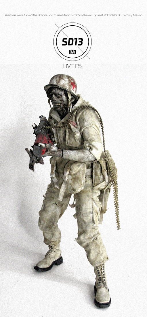 而在SDCC上,3A TOYS将发售两款会场版。一款是“医疗”配色的僵尸,僵尸配备的机枪是全新建模;