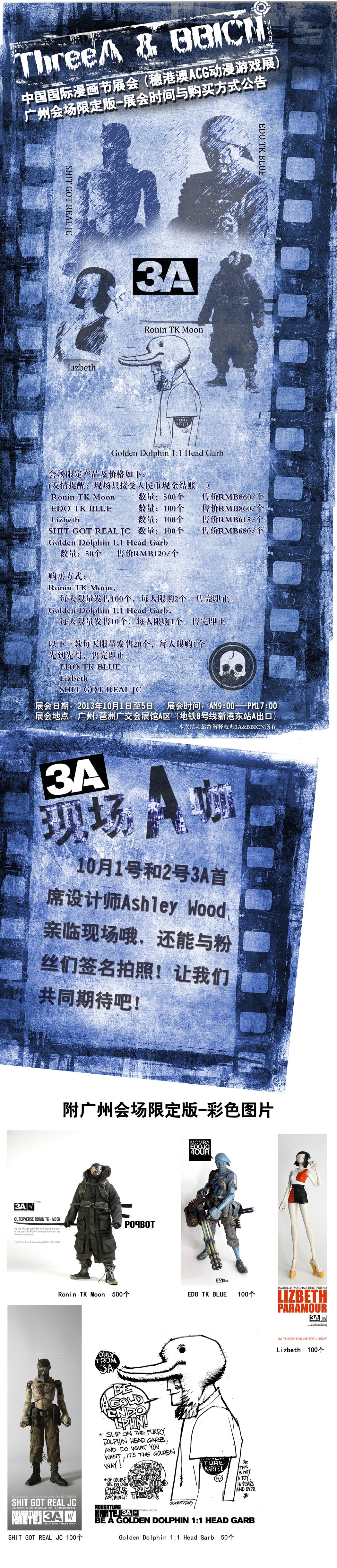 2013年广州漫画节将于十一期间在广州举办,3A TOYS将参展,并于展会上发布会场限定商品。