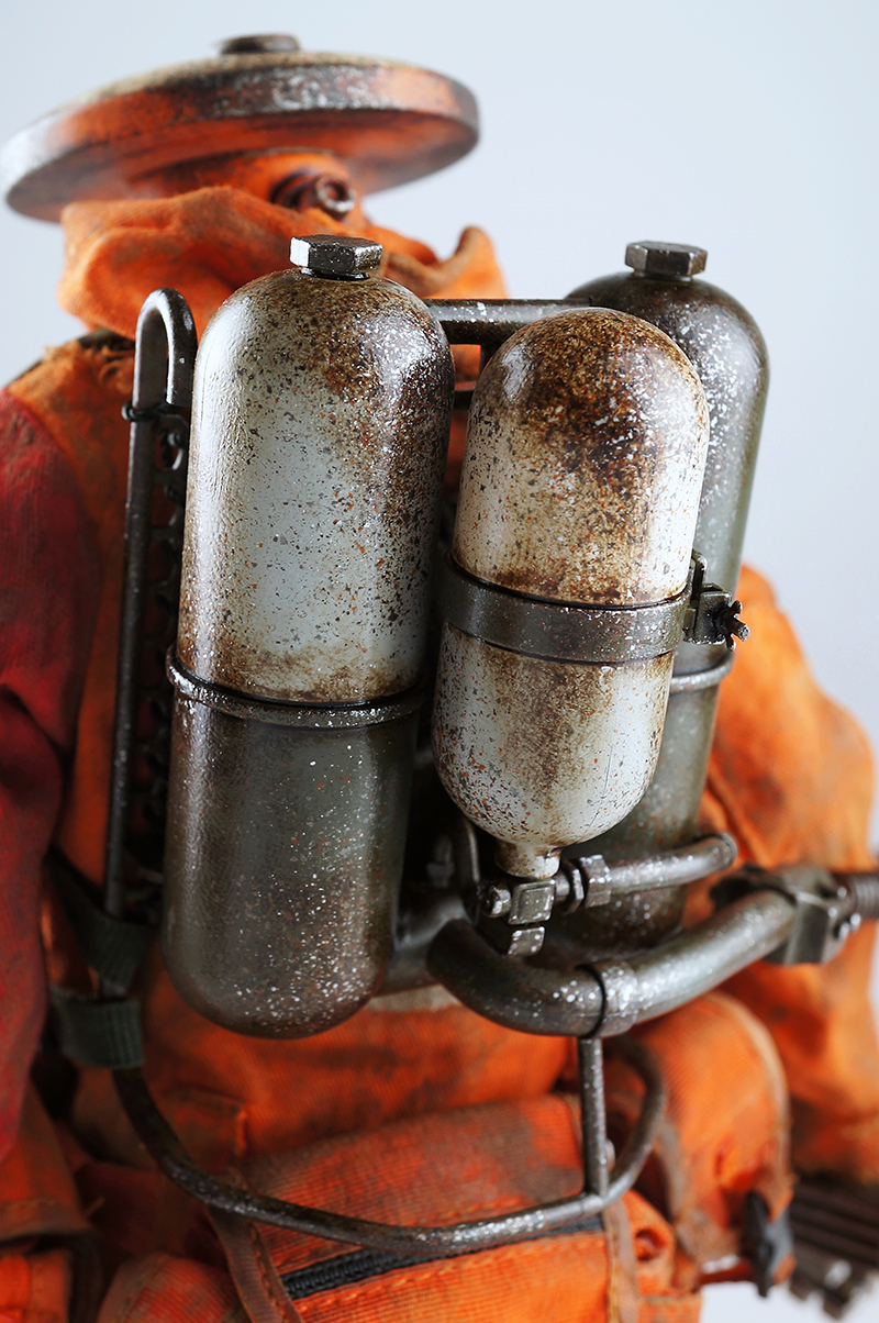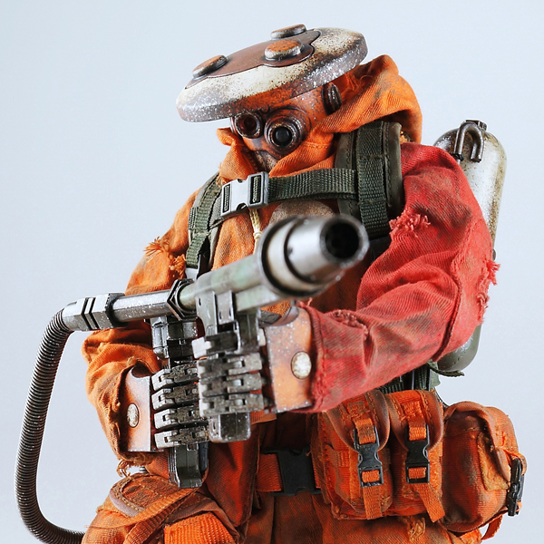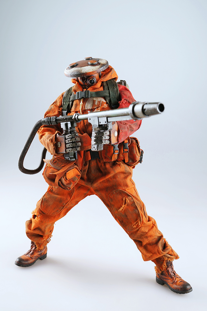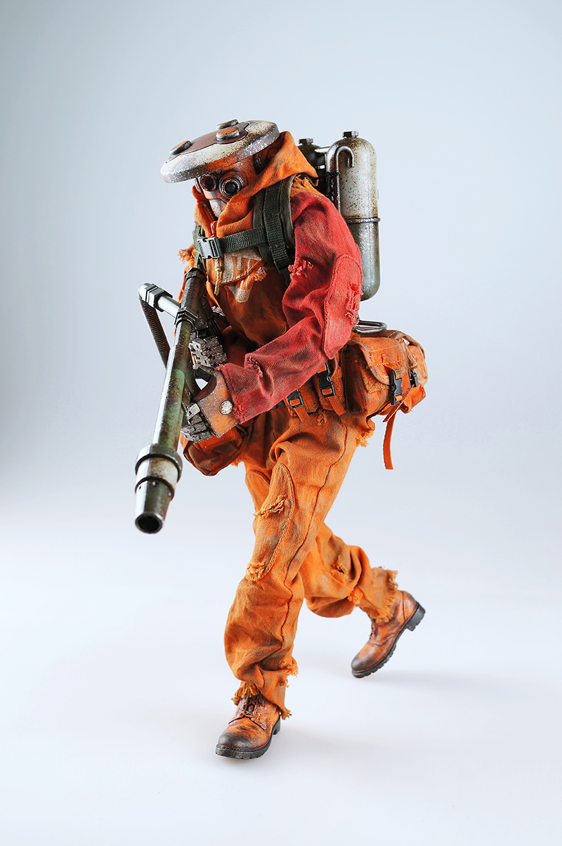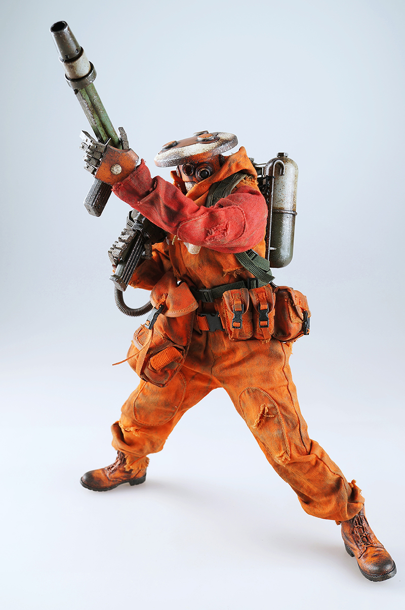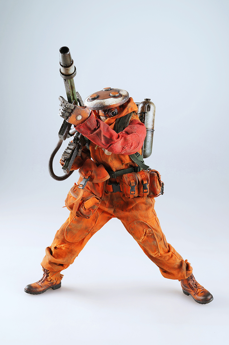3A TOYS曾在画册中发表过一款拿着火焰喷射器的锅盖头(Zombot),现在,这个人偶就要发售了。这只人偶的名字为Hot Foot,曾经是Finger Gang(手指帮)的一员,后来离开了团队。