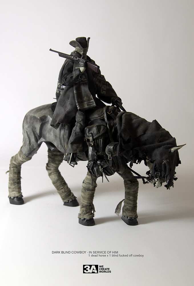 一款重涂作品竟然能获得年度最佳玩具的桂冠,我只能说,玩家真的太爱这个角色了。在整个Popbot系列中,盲牛仔是能让人一眼就看懂他身上所经历的故事的角色,加上宝丽石材料制作的“分量十足”幽灵马,必须说,原色盲牛仔发售的时候,可能大家还没反应过来,而暗黑盲牛仔给了大家一个弥补缺憾的机会。相比原色盲牛仔,暗黑盲牛仔的黑灰配色更能衬托这个悲剧英雄的阴暗。这次原创作品终于守住了阵线,没有给合作款机会。
