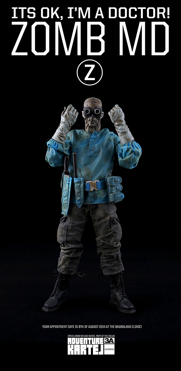 3A TOYS公布,将于8月8日发售Adventure Kartel系列的ZOMB MD僵尸博士,和ZOMB NURSE僵尸护士。在Adventure Kartel的故事中,ZOMB MD僵尸博士是所有僵尸的创造者,亦是主角小队最大的敌人。