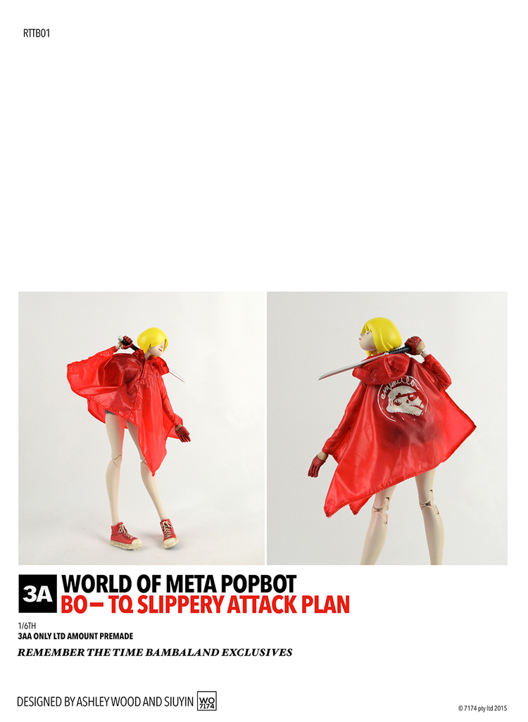 「BO-TQ 滑步」(BO–TQ SLIPPERY ATTACK PLAN),官方售价140美元,包含一件雨衣和一把剑,将于2015年3季度到货。