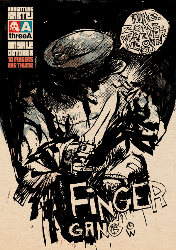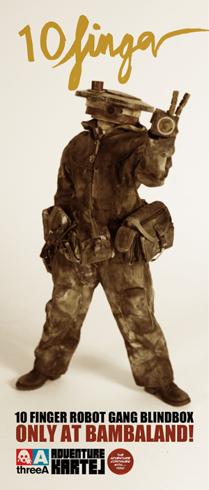手指帮的全名其实很长,Nefarious 10 Finger Robot Gang,邪恶的手指机器人十人帮。他们是Adventure Kartel系列中的一组角色,属于Zombot 2型号。他们是中立的角色,既不是英雄,也不是坏蛋。他们共有11人,老大是King Thumb,还有10个Zombot 2小弟,帮着King Thumb追求Cherry Shadow的芳心。